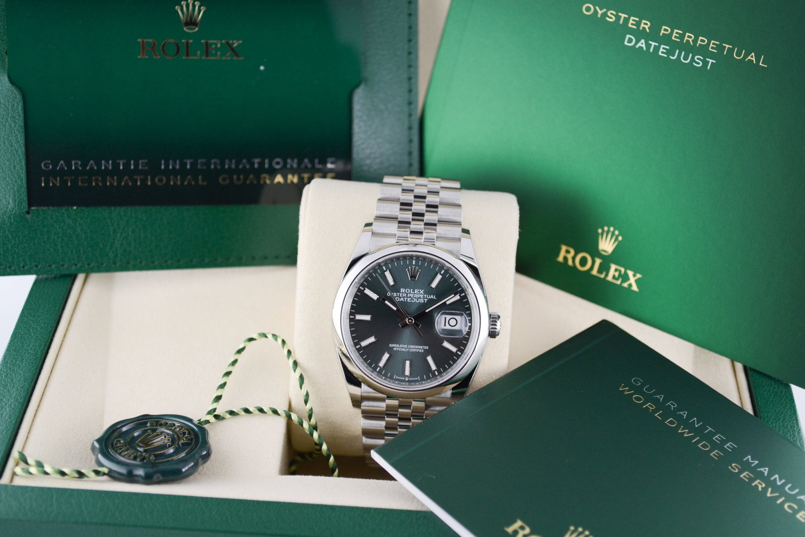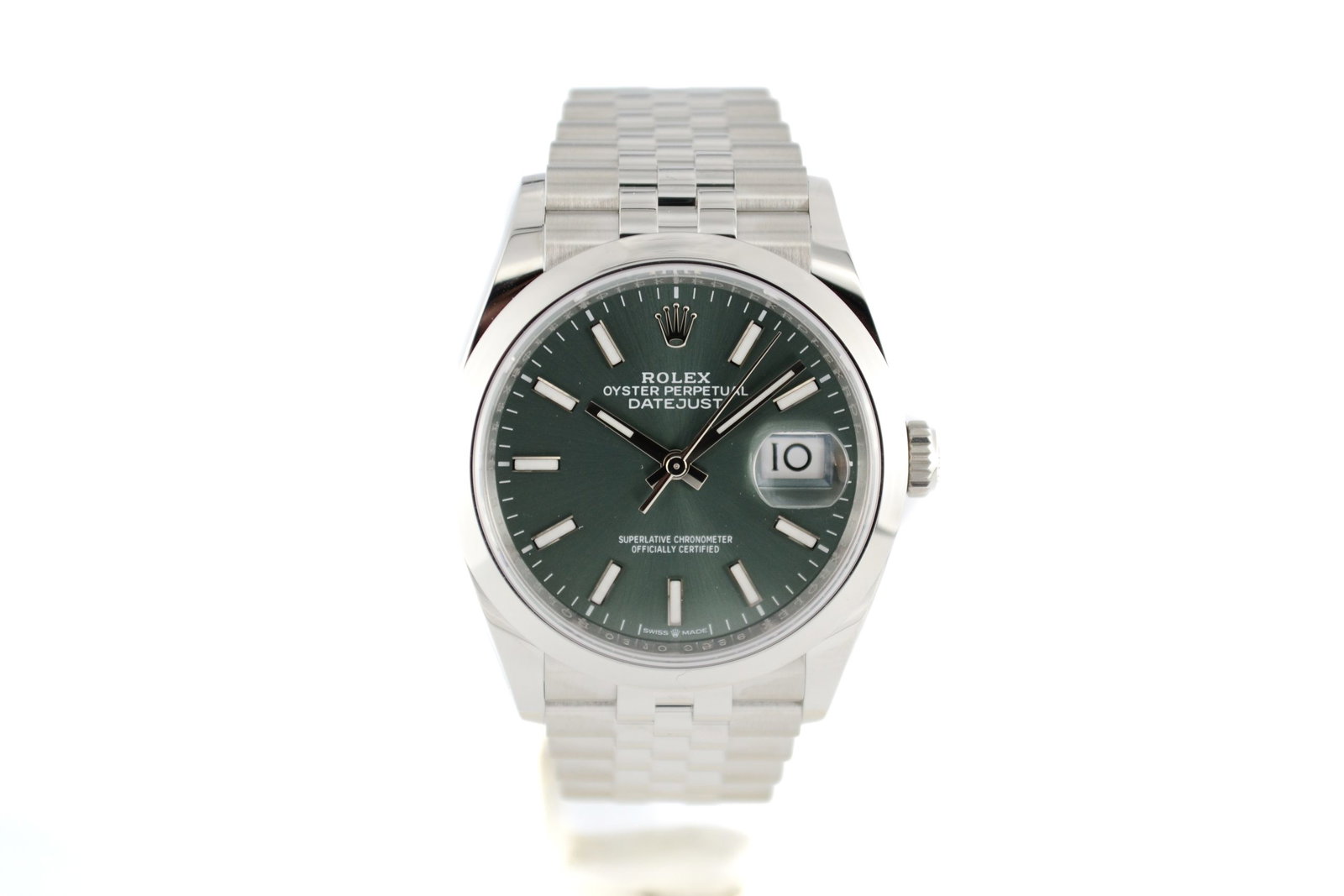 Maak kennis met de Rolex Datejust (36) 126200 uit 2026. Dit elegante horloge heeft een unieke mint groene wijzerplaat, een roestvrijstalen 36 mm behuizing, en een Jubilee-band. De combinatie van verfijnde details en de kenmerkende datumfunctie met cyclops-lens maken het een tijdloos statement. Perfect voor zowel casual als formele gelegenheden!
