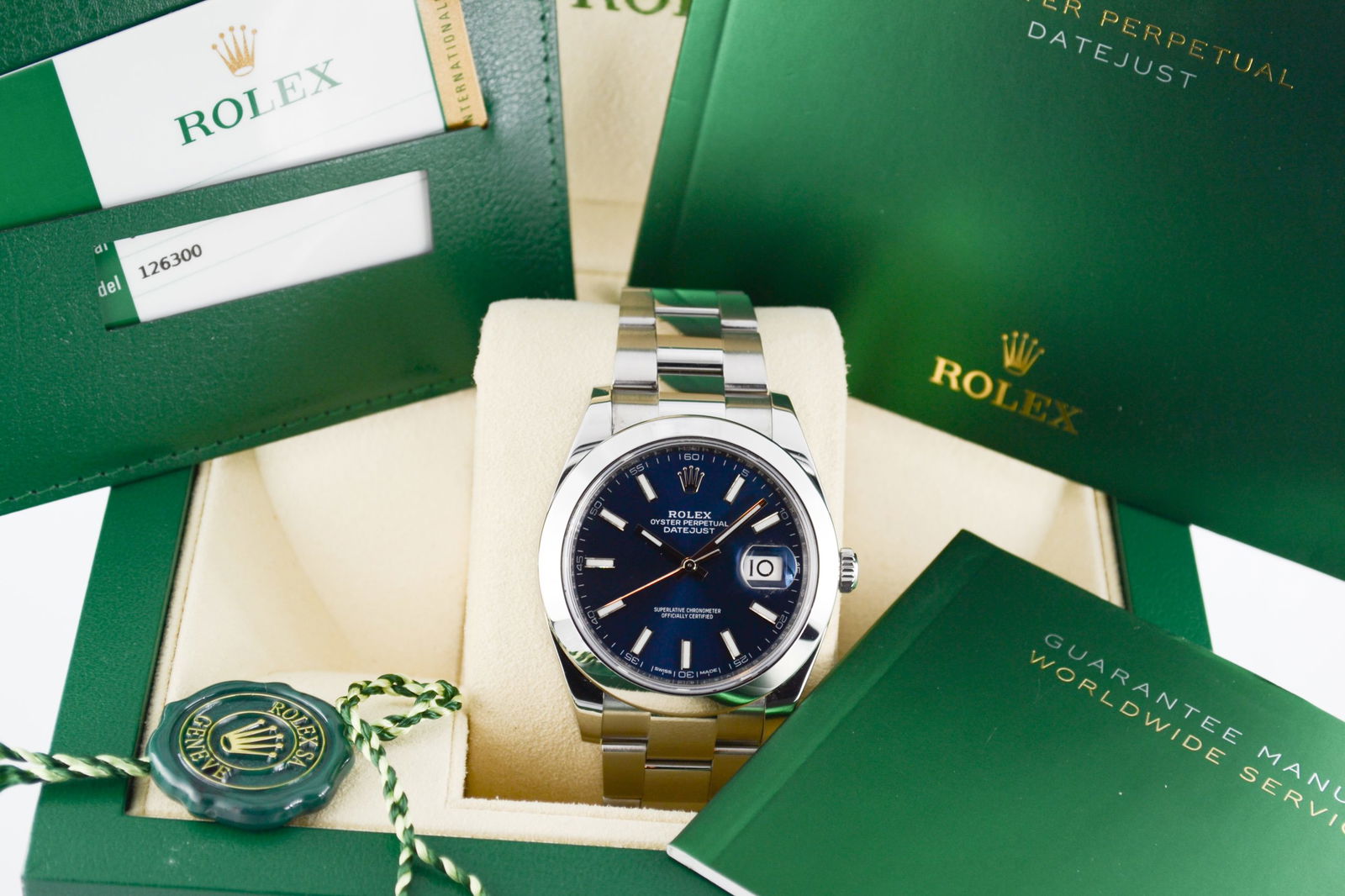 Maak kennis met de Rolex Datejust (41) 126300 uit 2017, een ongedragen horloge dat elegantie en stijl combineert. Met een opvallende blauwe wijzerplaat en een robuuste roestvrijstalen behuizing van 41 mm is dit horloge een echte blikvanger. De karakteristieke datumfunctie met cyclops-lens en de comfortabele Oyster-band zorgen voor een verfijnde uitstraling. Aangedreven door het betrouwbare Rolex Caliber 3235 uurwerk, biedt het horloge zowel precisie als een gangreserve van ongeveer 70 uur. Voeg deze luxe toevoeging toe aan uw collectie!