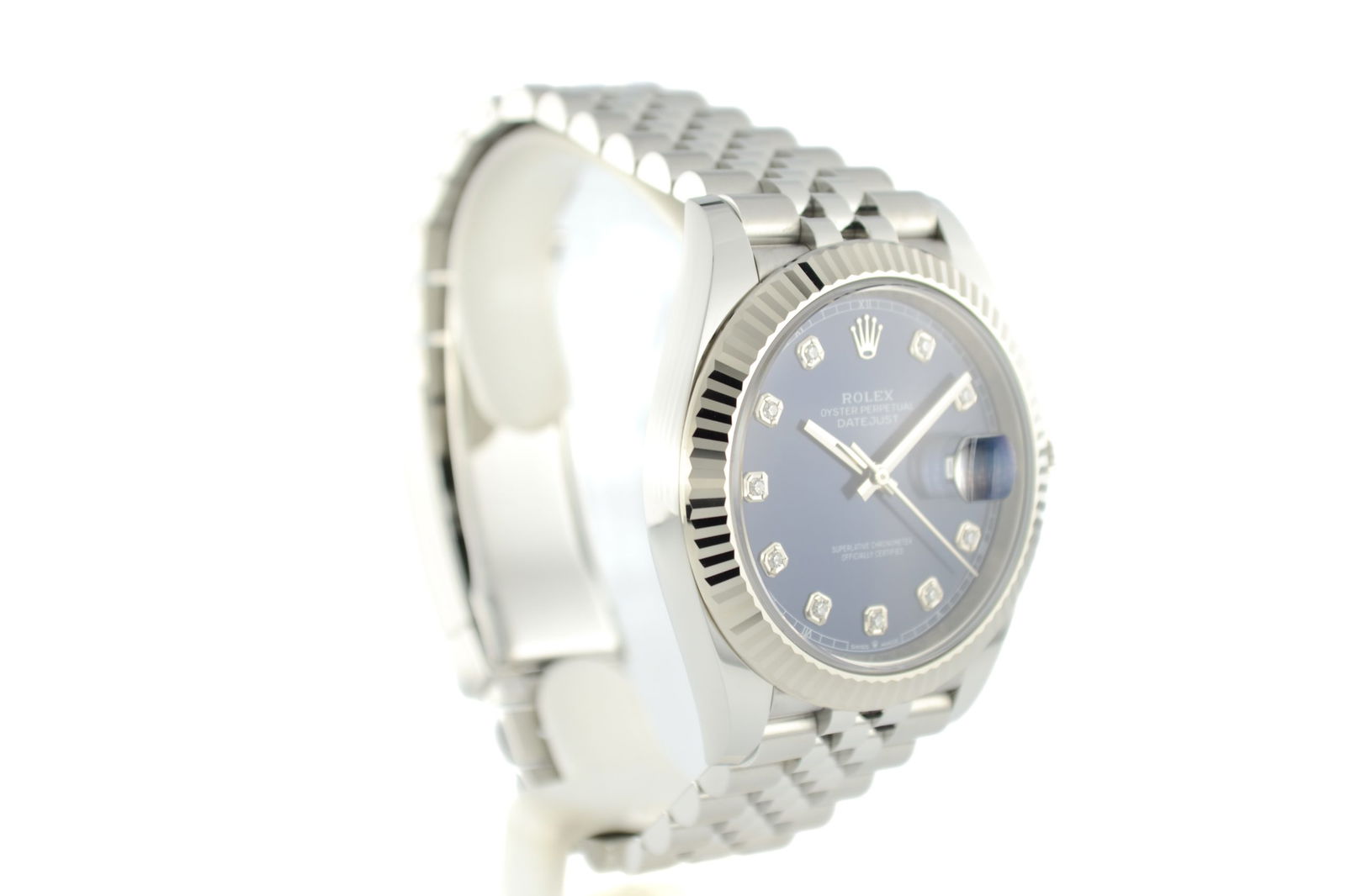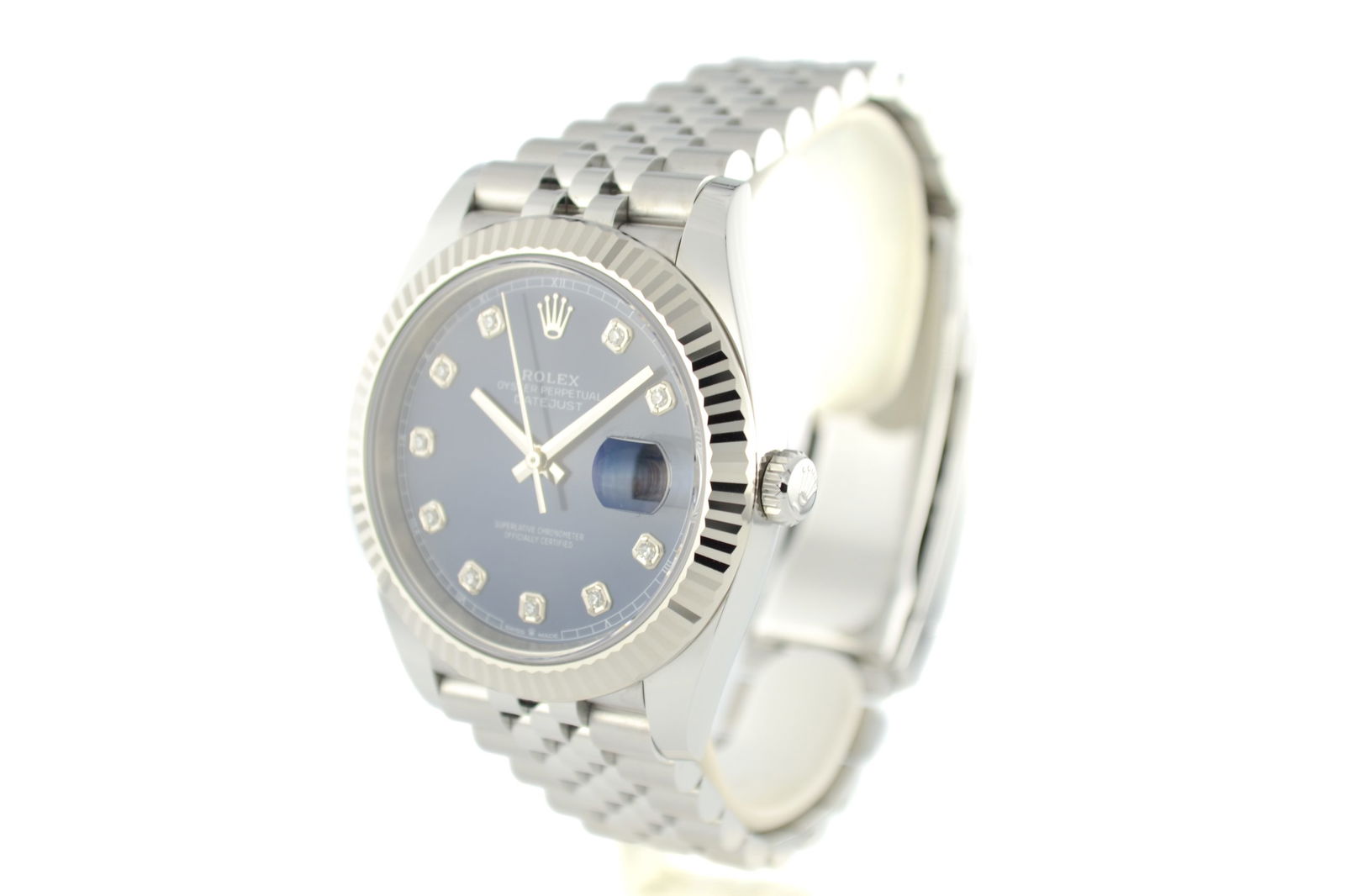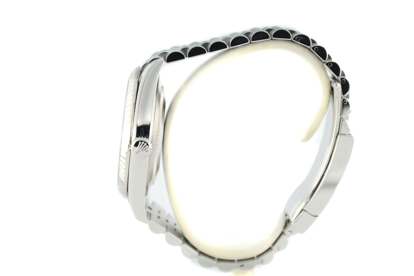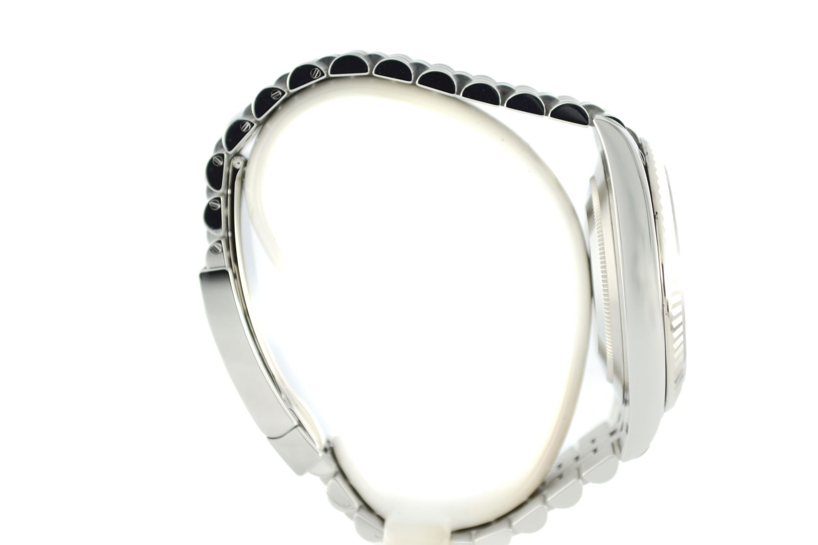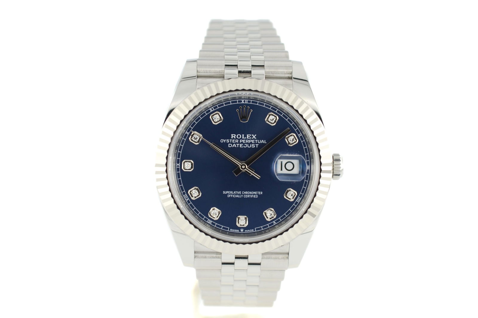De Rolex Datejust 126334 combineert tijdloze stijl met een frisse, moderne uitstraling. De 41 mm Oystersteel kastwordt prachtig omlijst door een witgouden geribbelde bezel, die het horloge een verfijnde touch geeft.