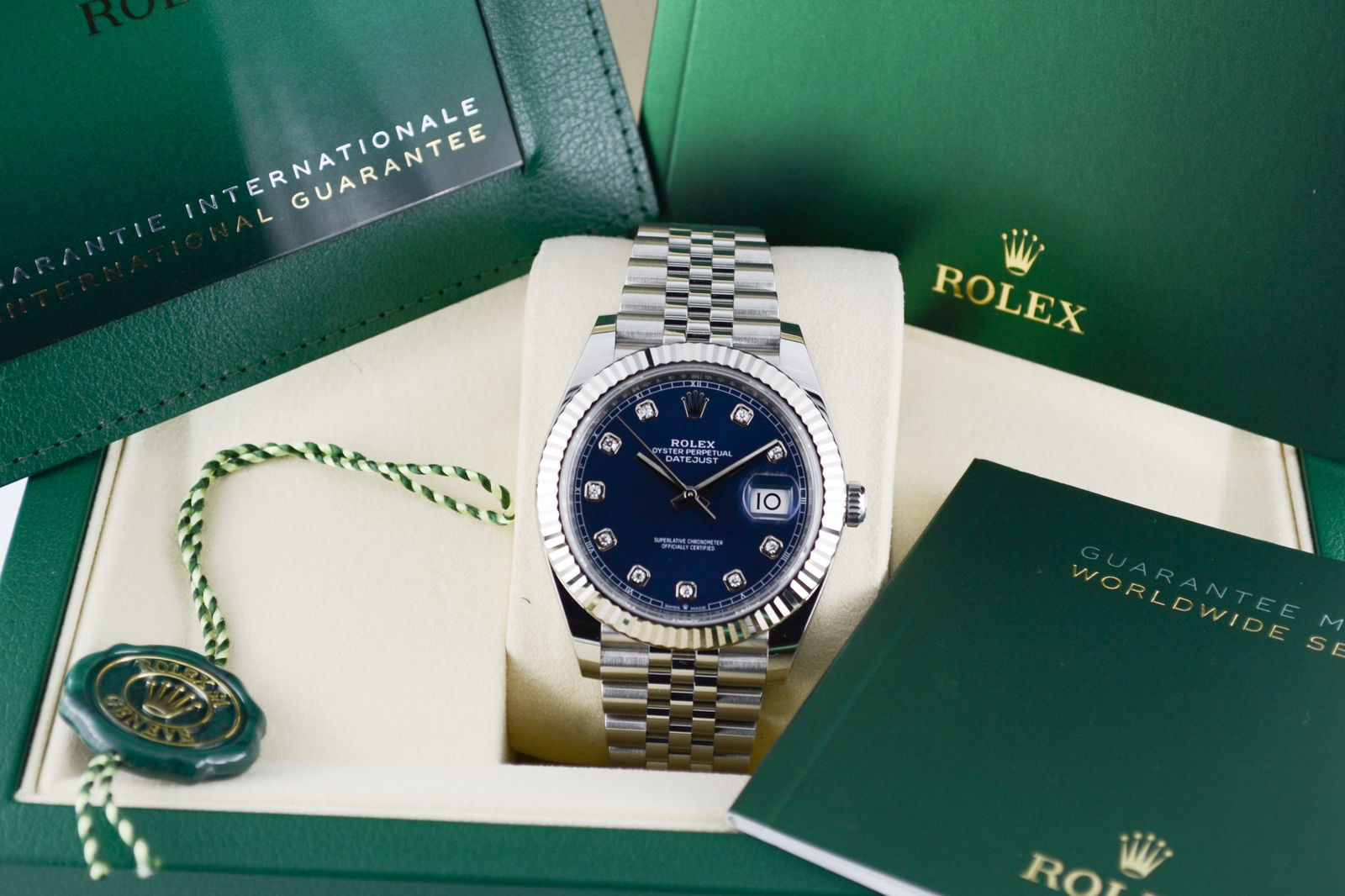De diepe blauwe wijzerplaat is voorzien van schitterende diamanten indexen, die het horloge een luxueuze en subtiele glans geven. Het betrouwbare caliber 3235 uurwerk zorgt voor nauwkeurigheid en duurzaamheid.