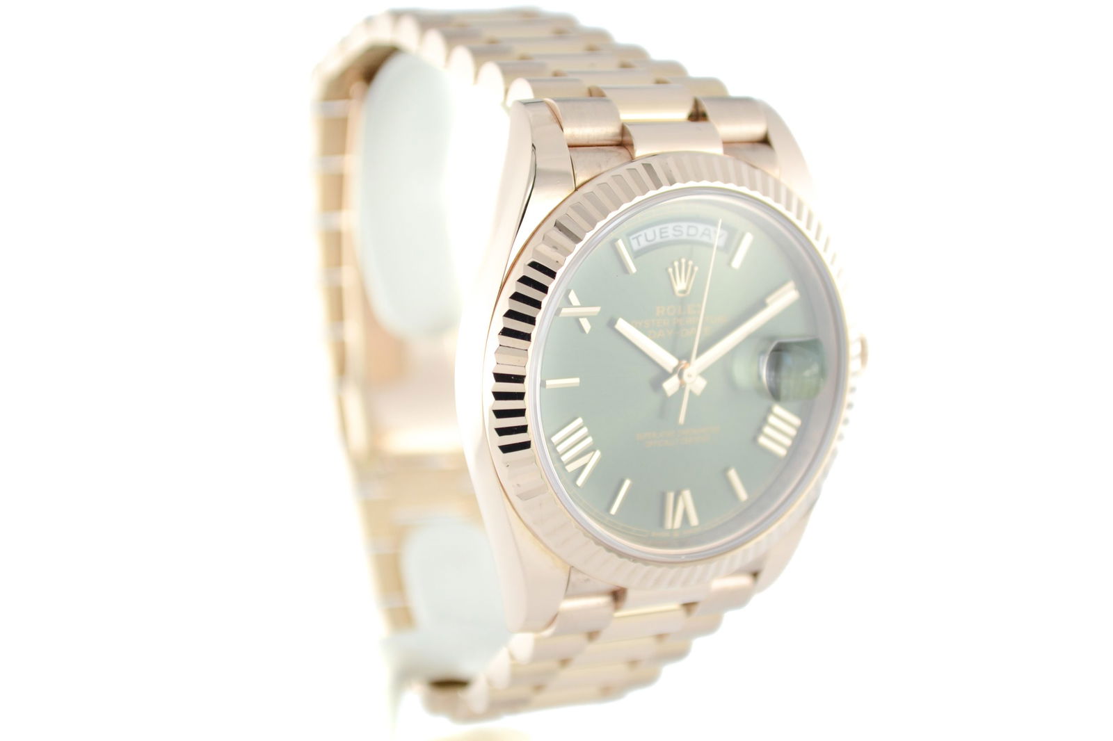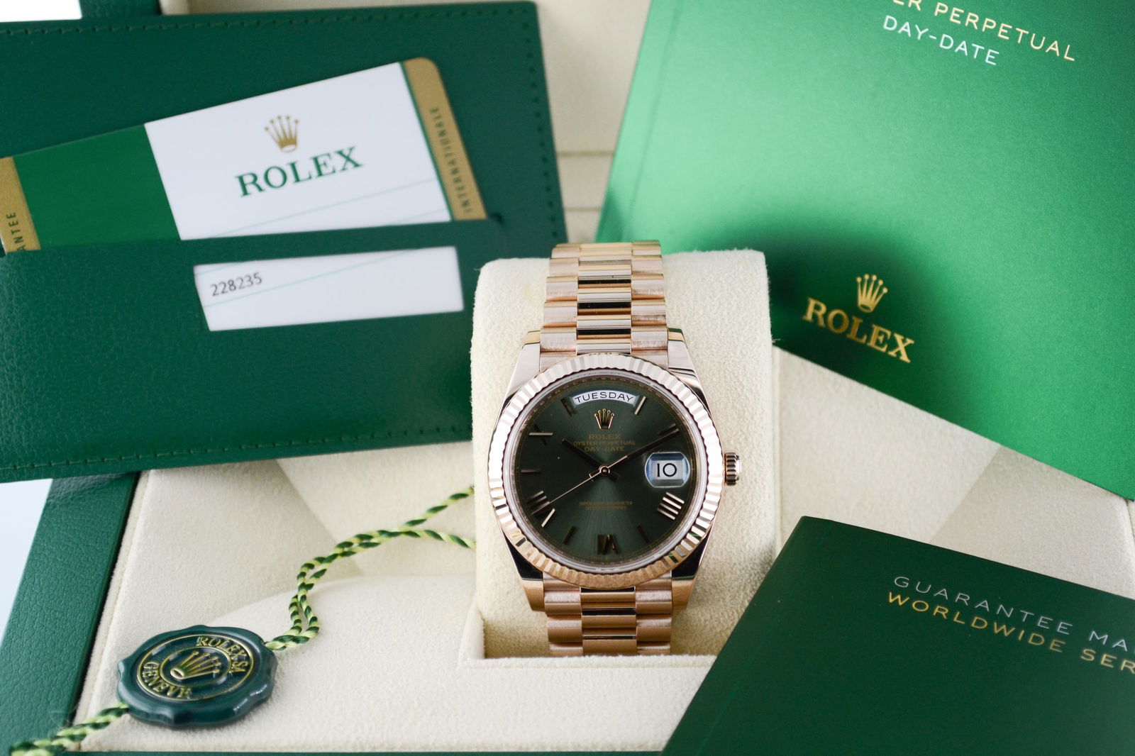De Rolex Day-Date 228235 uit 2019 is een meesterwerk van luxe en vakmanschap. Uitgevoerd in 18-karaats rose goud en voorzien van een betoverende olive green wijzerplaat, straalt dit iconische model tijdloze elegantie uit. Met een kastdiameter van 40mm combineert het een indrukwekkende uitstraling met ultiem draagcomfort.