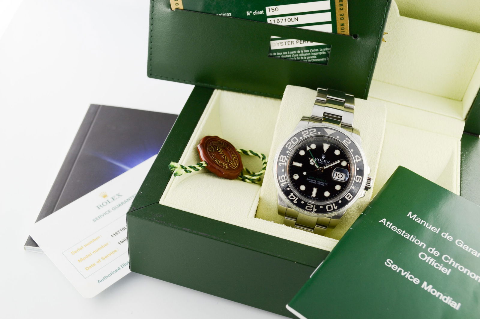 De Rolex GMT-Master II 116710LN is een iconisch horloge dat perfect ontworpen is voor avonturiers en reizigers. Met een 40 mm Oystersteel kast en een strakke, zwarte Cerachrom keramische bezel biedt dit model een tijdloos en sportief design.