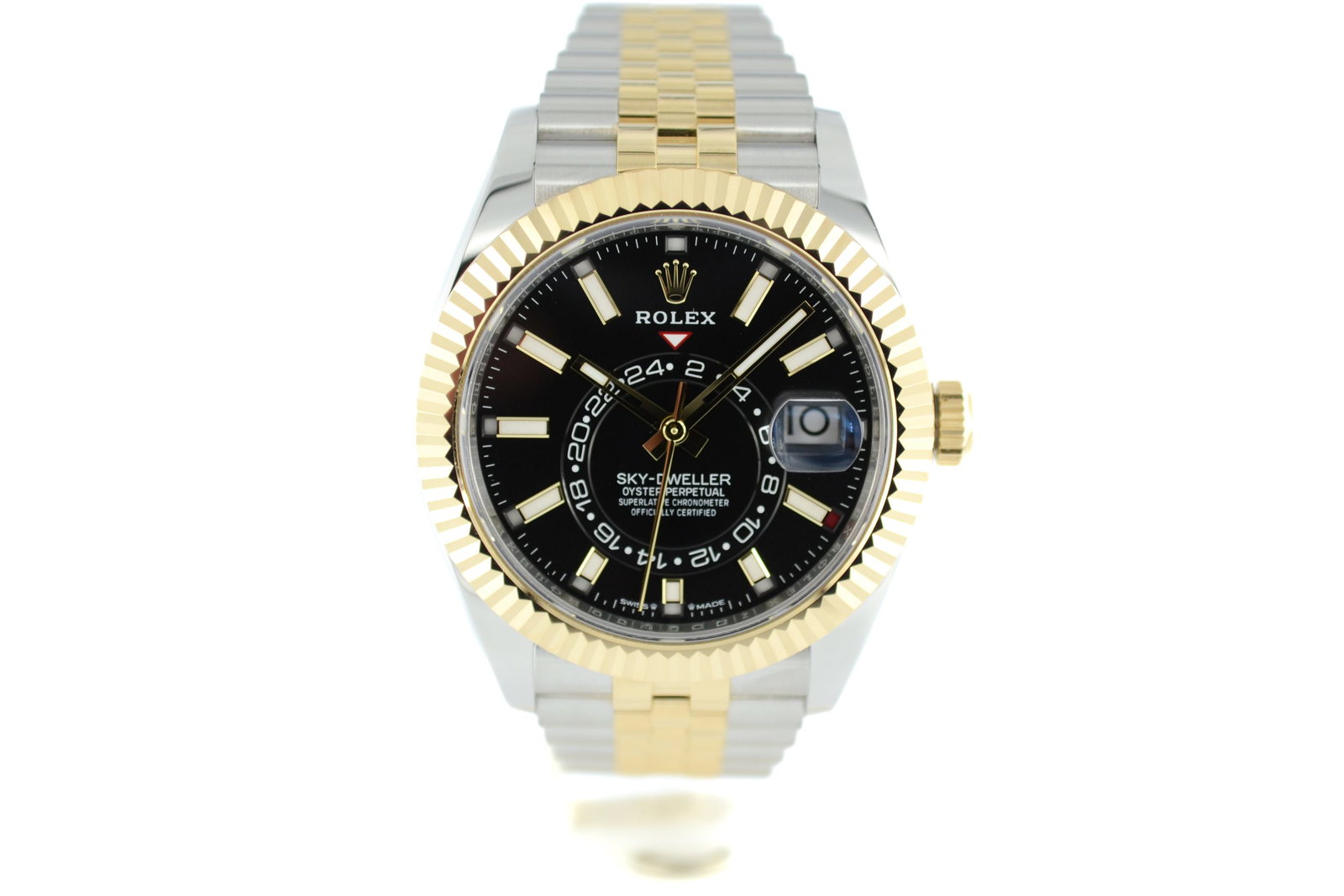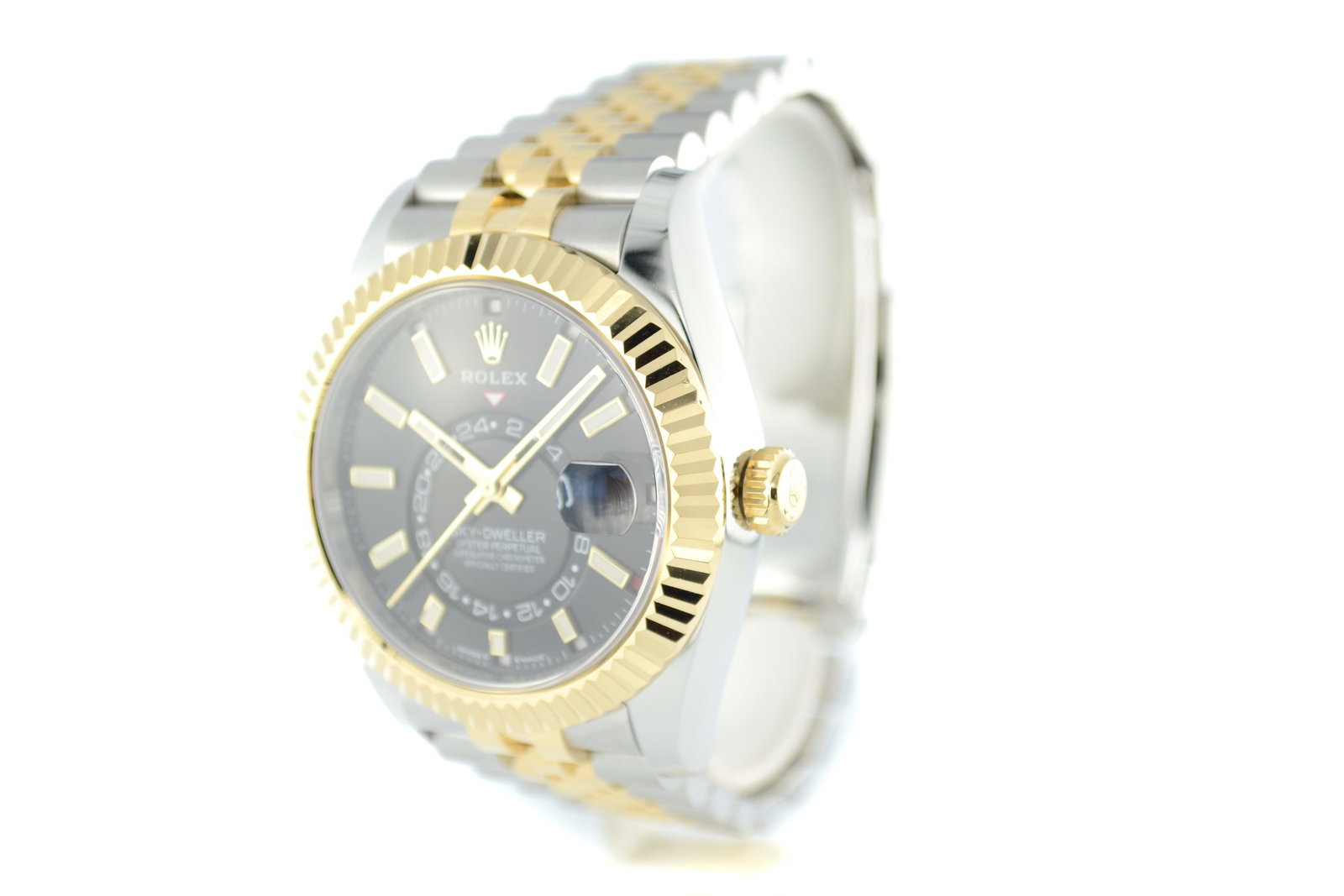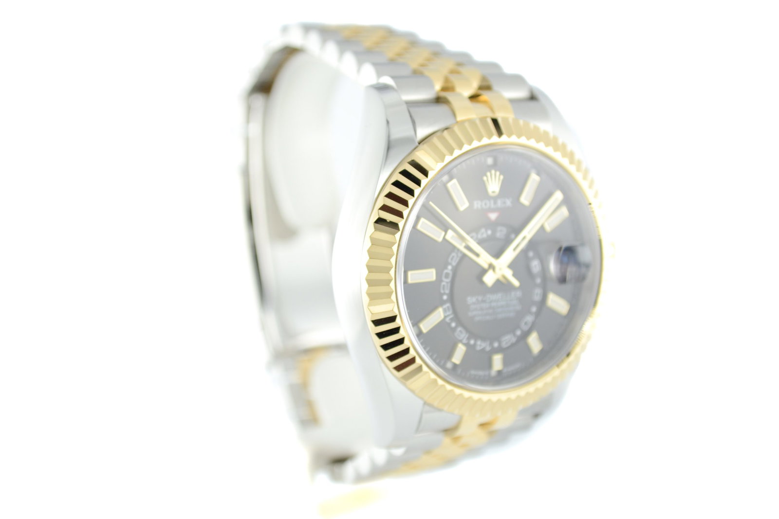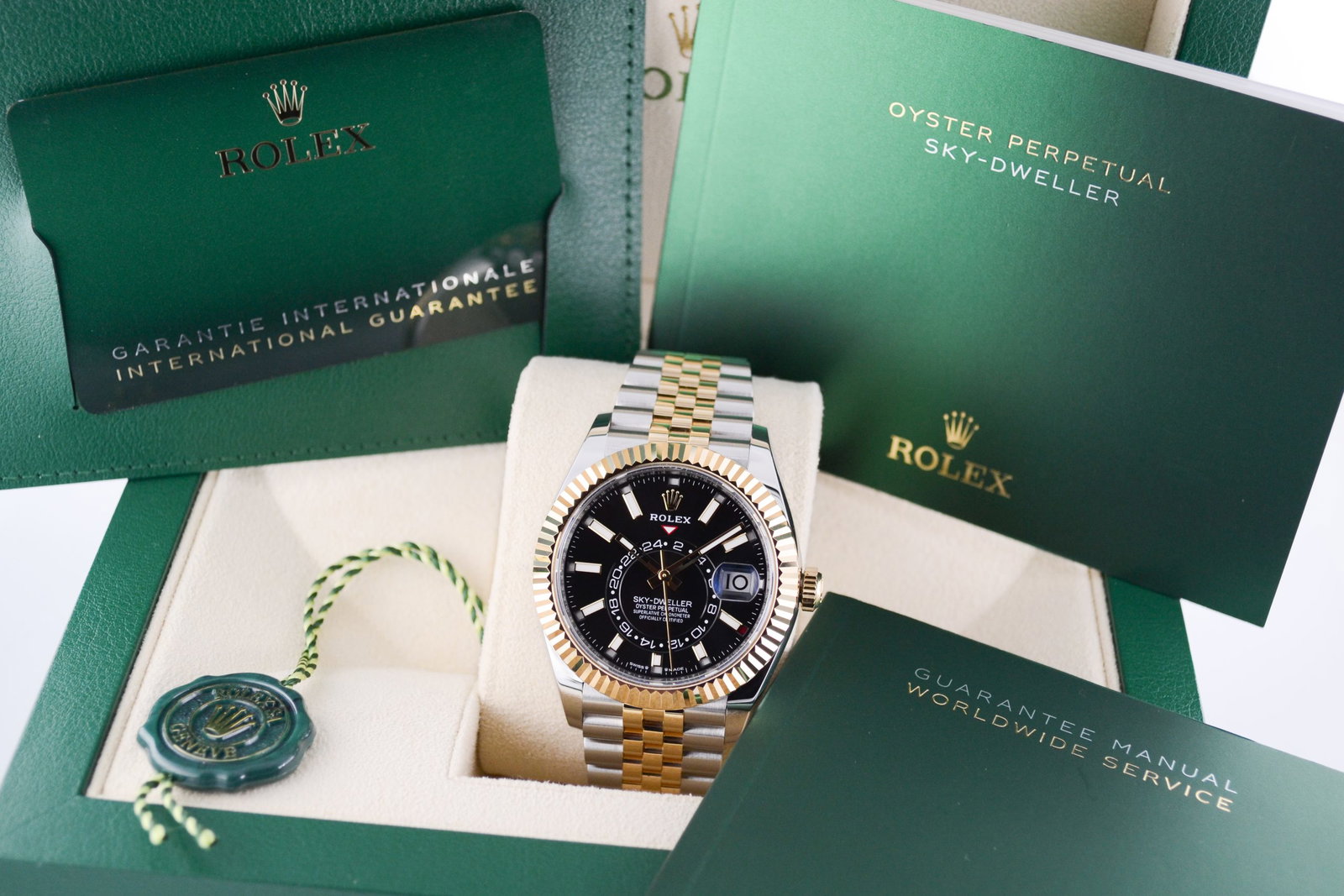 De Rolex Sky-Dweller 336933 met Zwarte wijzerplaat uit 2024 is een horloge dat luxe en functionaliteit perfect combineert. Dit model heeft een elegante 42mm kast van Oystersteel en geelgoud, afgewerkt met een verfijnde Jubilee-band die zorgt voor een comfortabele pasvorm. De opvallende champagne wijzerplaat, met maandaanduiding en een tweede tijdzone, maakt dit horloge niet alleen een stijlstatement, maar ook een technisch hoogstandje. Met een waterdichtheid tot 100 meter en het betrouwbare Rolex 9001 uurwerk, is de Sky-Dweller ideaal voor zowel zakelijke als casual gelegenheden. Een prachtig exemplaar voor elke horlogeliefhebber.