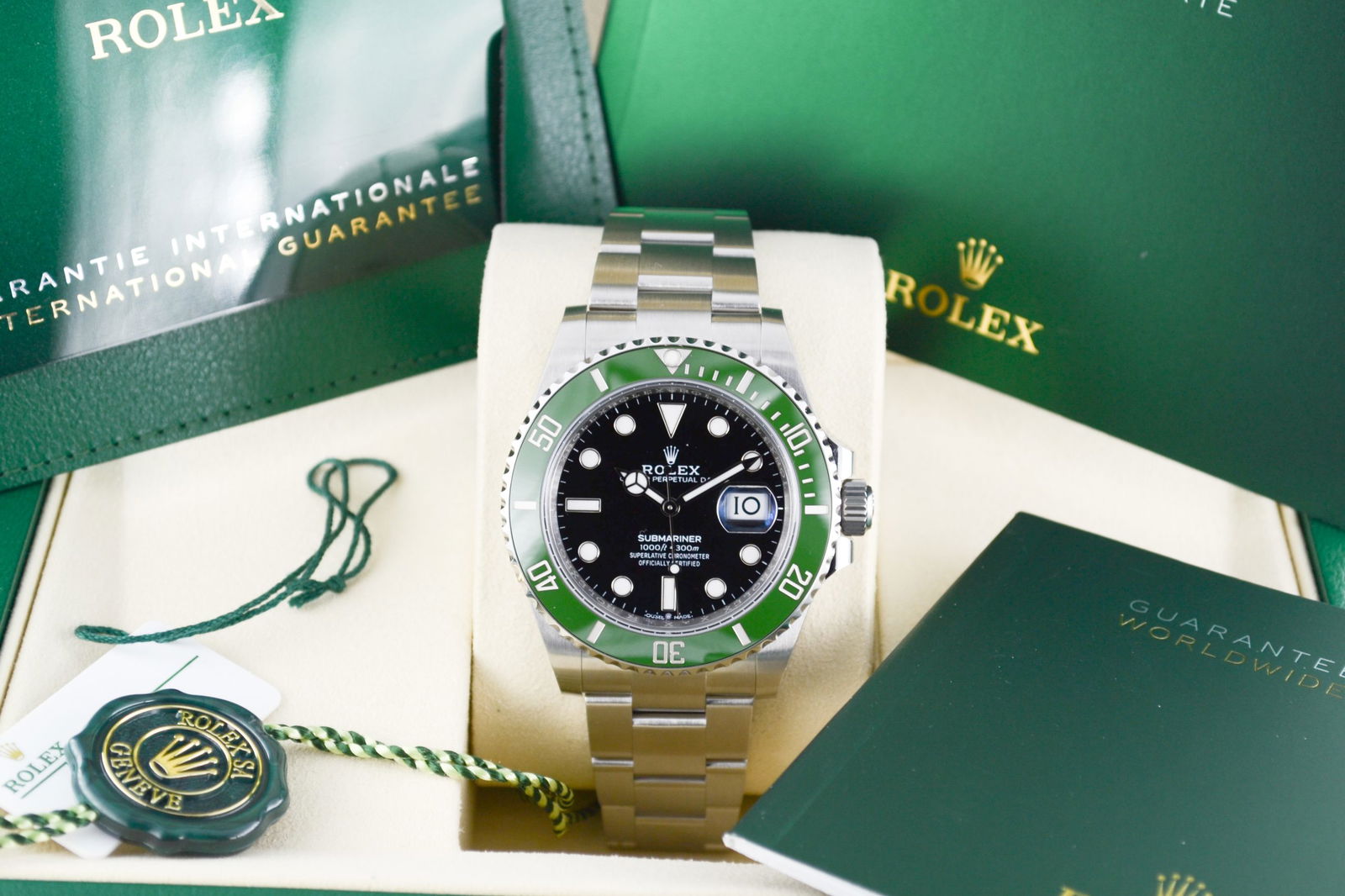 De Rolex Submariner Date 126610LV uit 2026 is een duikhorloge dat luxe en functionaliteit moeiteloos combineert. Het model beschikt over een opvallende groene Cerachrom bezel en een elegante zwarte wijzerplaat, verpakt in een robuuste 41mm Oyster-stalen kast. Met een waterdichtheid tot 300 meter en uitgerust met het betrouwbare 3235 uurwerk, biedt dit horloge uitzonderlijke precisie en een gangreserve van 70 uur. Dit tijdloze en hoogwaardige horloge is perfect voor zowel professionele duikers als horlogeverzamelaars.