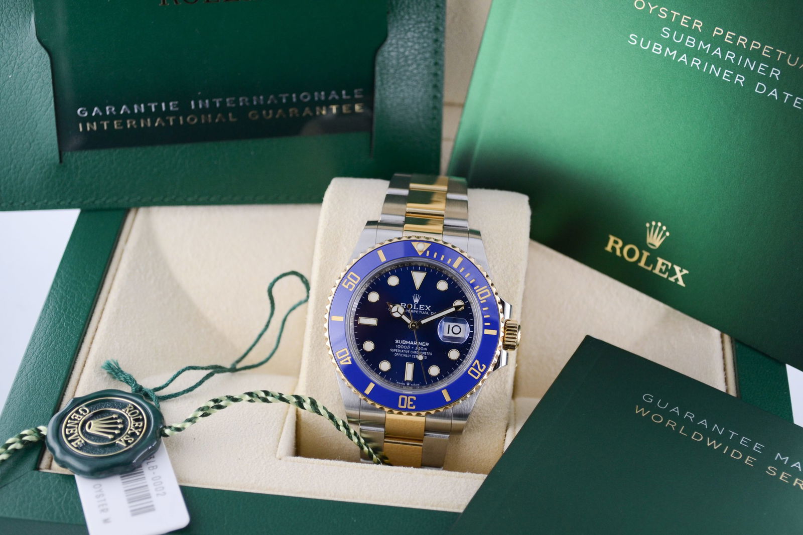De Rolex Submariner Date 126613LB uit 2022 is een icoon onder de duikhorloges en combineert luxe met robuustheid. Deze uitvoering valt direct op door de blauwe keramische bezel, een sportieve knipoog naar de zee, in combinatie met een klassieke zwarte wijzerplaat – een unieke en stijlvolle combinatie.
